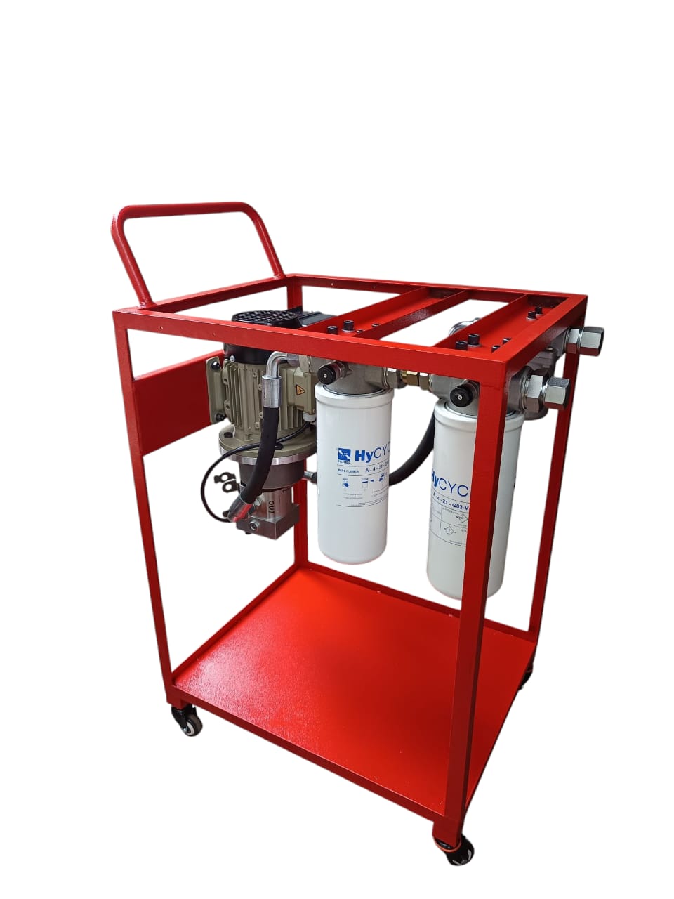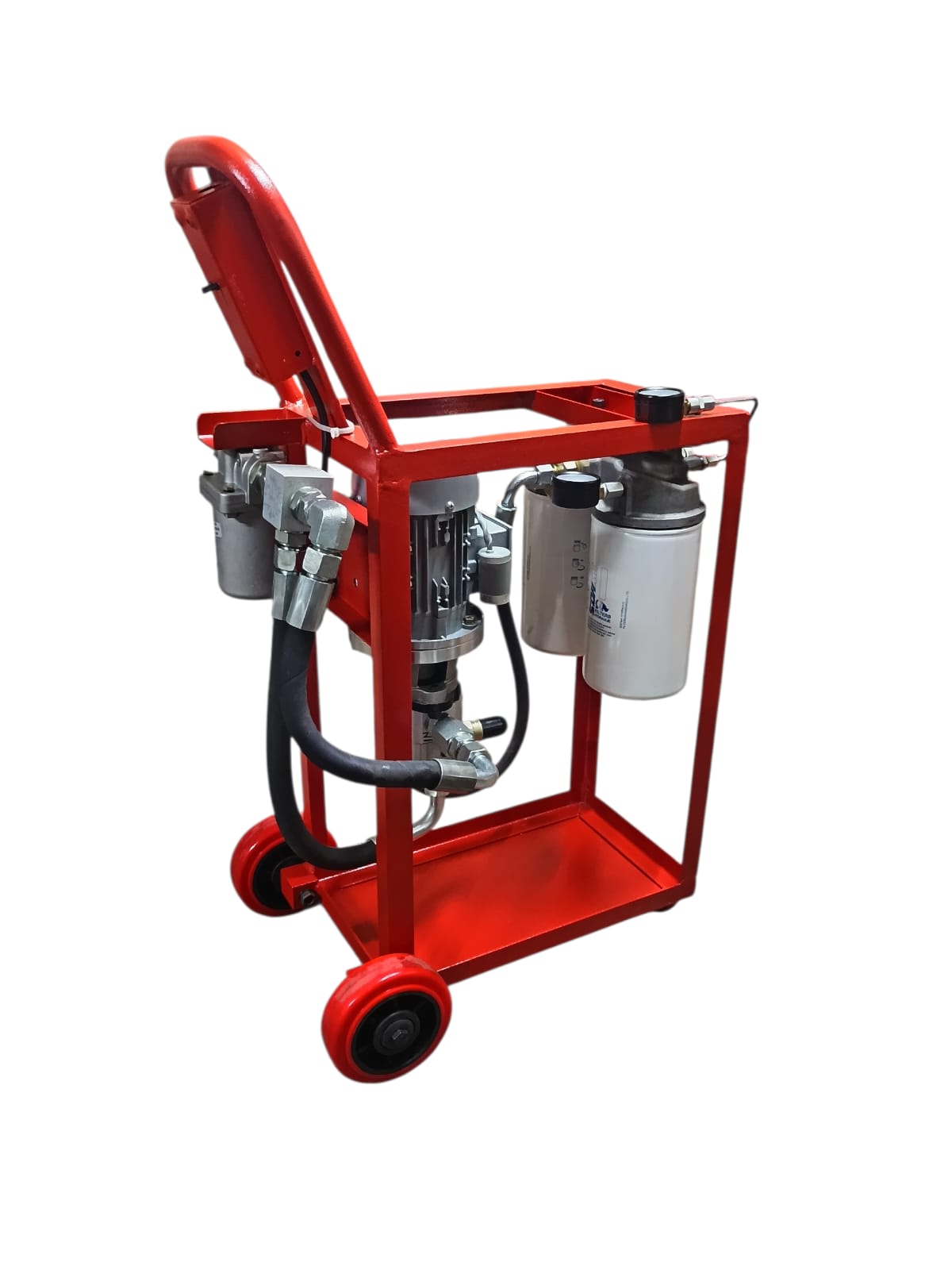 Yet another consideration for high-flow filter systems is rotating the filter machines between various systems in your plant. The high flow is useful in quickly completing a job and rotating the machine on the shop floor between various other systems. It is also useful in oil transfer functions when transferring oil from a new oil drum into a system, as new oil may not meet OEM standards.